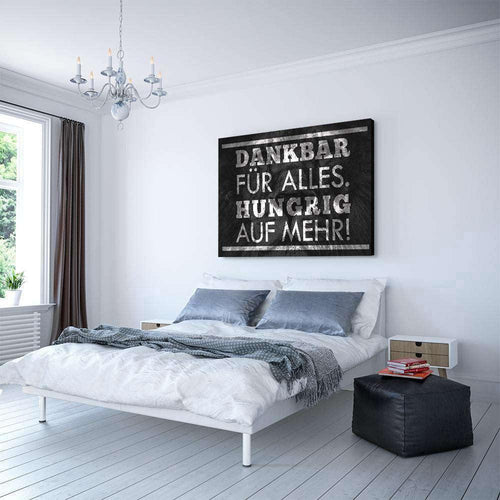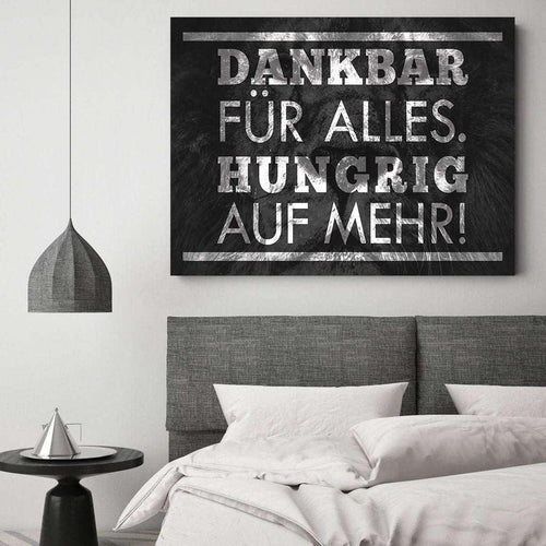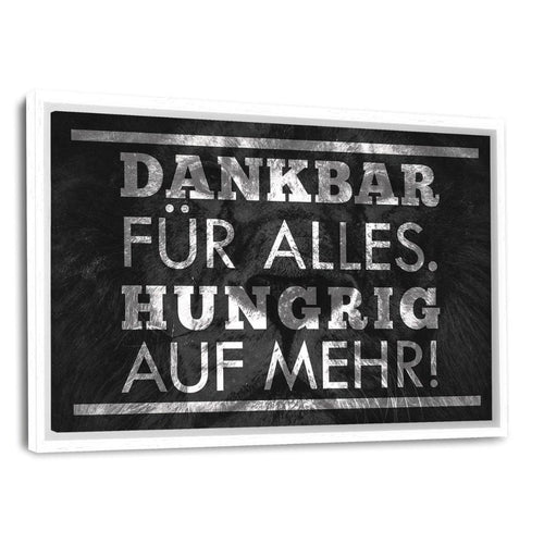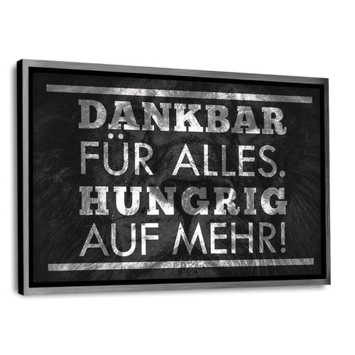 • HUNGRIG AUF MEHR! - Leinwandbild mit Schattenfuge "silber"