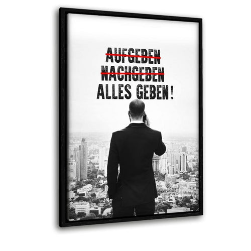 -AUFGEBEN- -NACHGEBEN- ALLES GEBEN! - Leinwandbild mit Schattenfuge "schwarz"