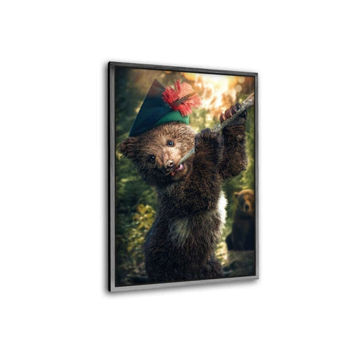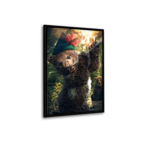 Bär mit Flöte - Leinwandbild mit Schattenfuge "schwarz"