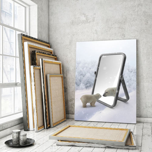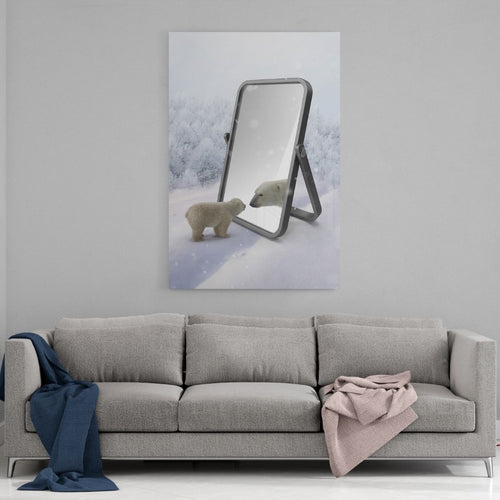 • Bear in the Mirror - Leinwandbild mit Schattenfuge "weiß"