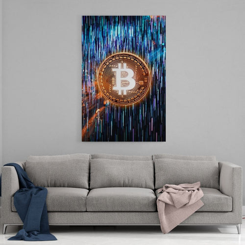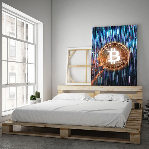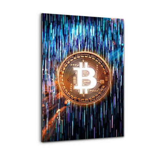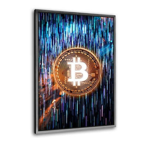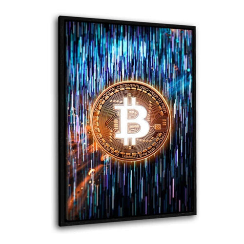 BLUE BITCOIN - Leinwandbild mit Schattenfuge "schwarz"