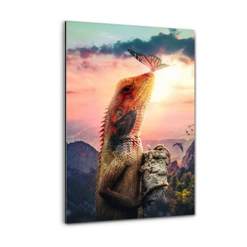 • Climbing Lizard - Leinwandbild mit Schattenfuge "silber"