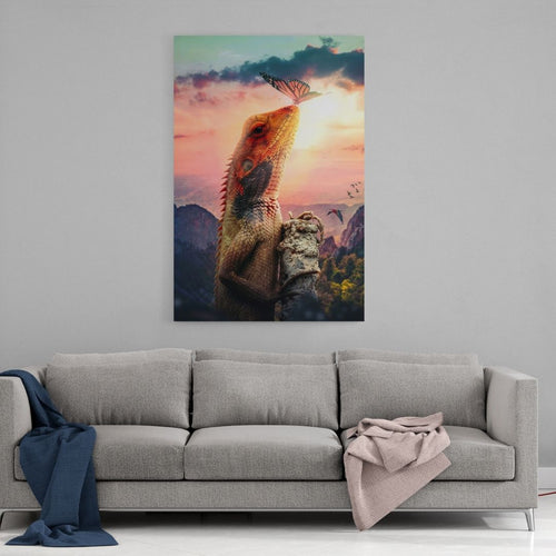 • Climbing Lizard - Leinwandbild mit Schattenfuge "weiß"
