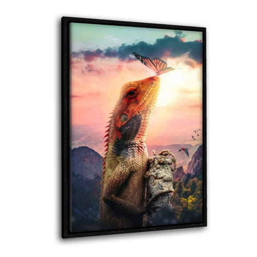 Climbing Lizard - Leinwandbild mit Schattenfuge "schwarz"