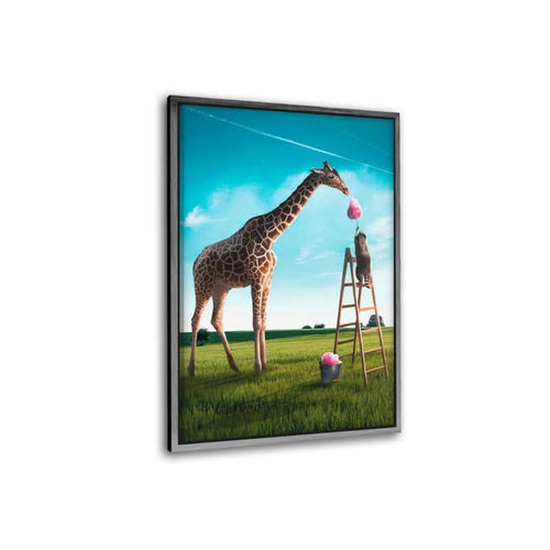 • Die hungrige Giraffe - Leinwandbild mit Schattenfuge "silber"