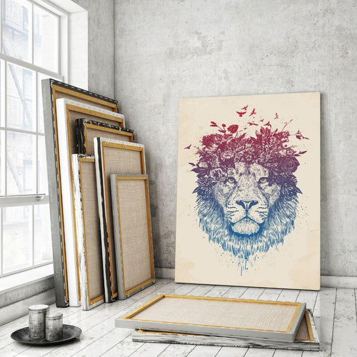 • Floral Lion #2 - Leinwandbild mit Schattenfuge "weiß"