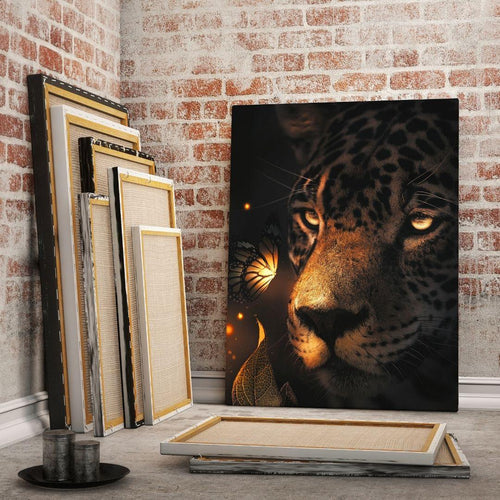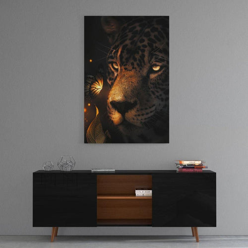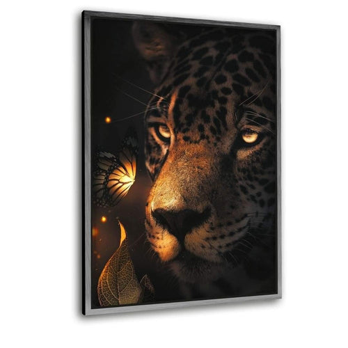 Glowing Leopard - Leinwandbild mit Schattenfuge "schwarz"