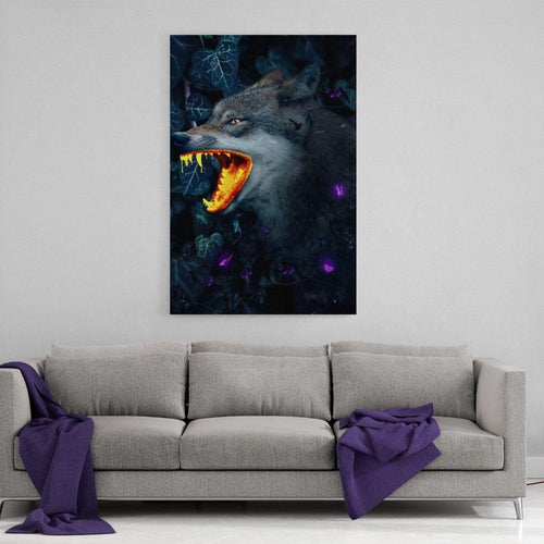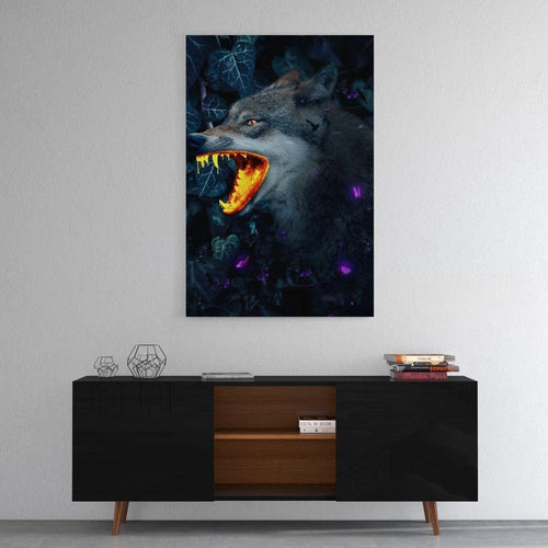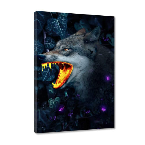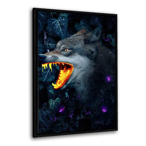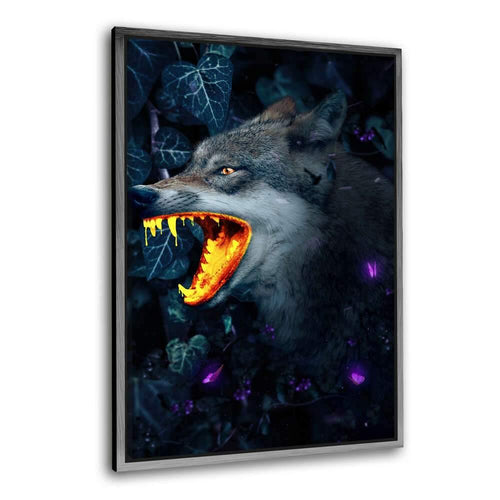 Goldener Wolf - Leinwandbild mit Schattenfuge "schwarz"