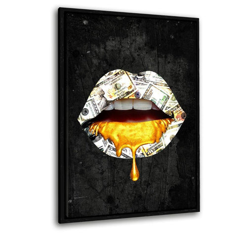 Lippe: I love Money. - Leinwandbild mit Schattenfuge "schwarz"