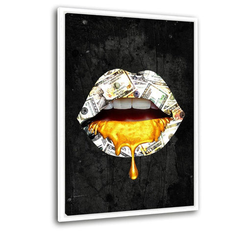 • Lippe: I love Money. - Leinwandbild mit Schattenfuge "weiß"