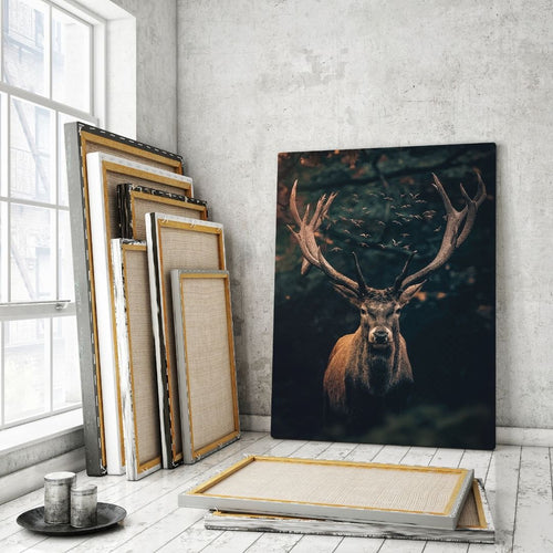 Moody Deer - Leinwandbild mit Schattenfuge "schwarz"