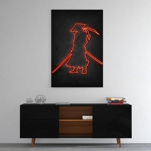 Samurai - neon - Leinwandbild mit Schattenfuge "schwarz"