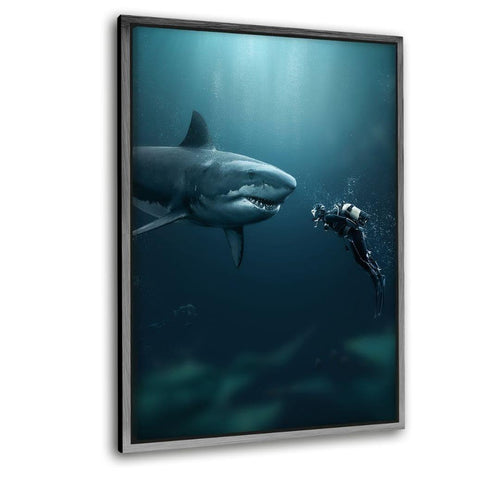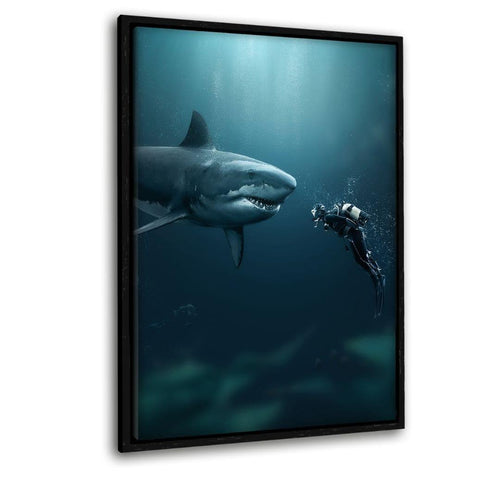 Shark x Diver - Leinwandbild mit Schattenfuge "schwarz"