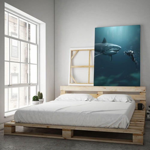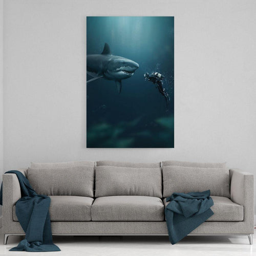 • Shark x Diver - Leinwandbild mit Schattenfuge "weiß"