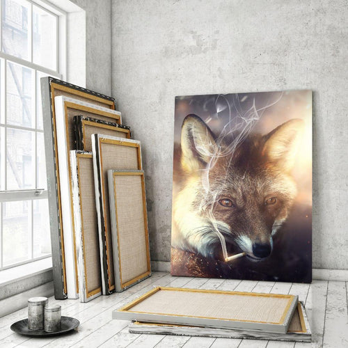 • Smoking Fox - Leinwand mit Schattenfuge "weiß"