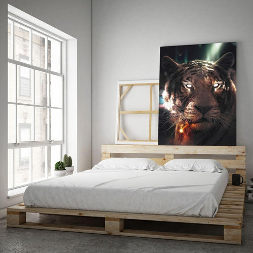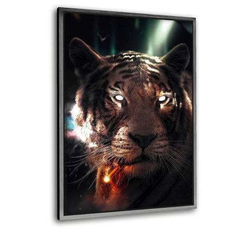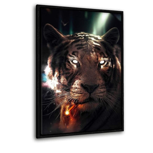 Smoking Tiger - Leinwandbild mit Schattenfuge "schwarz"