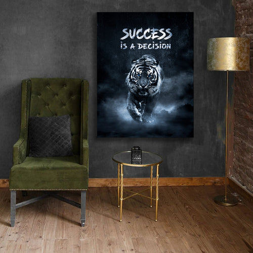• SUCCESS IS A DECISION! - Leinwand mit Schattenfuge "silber"