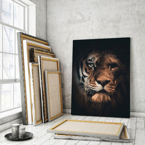 Tiger Lion - Leinwandbild mit Schattenfuge "schwarz"