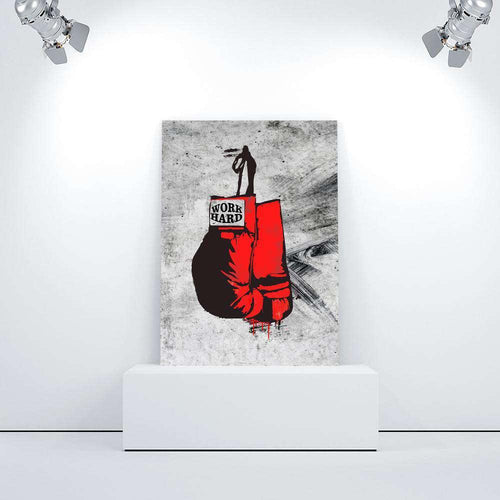 • Work Hard - nicht nur im Ring! - Leinwandbild mit Schattenfuge "silber"